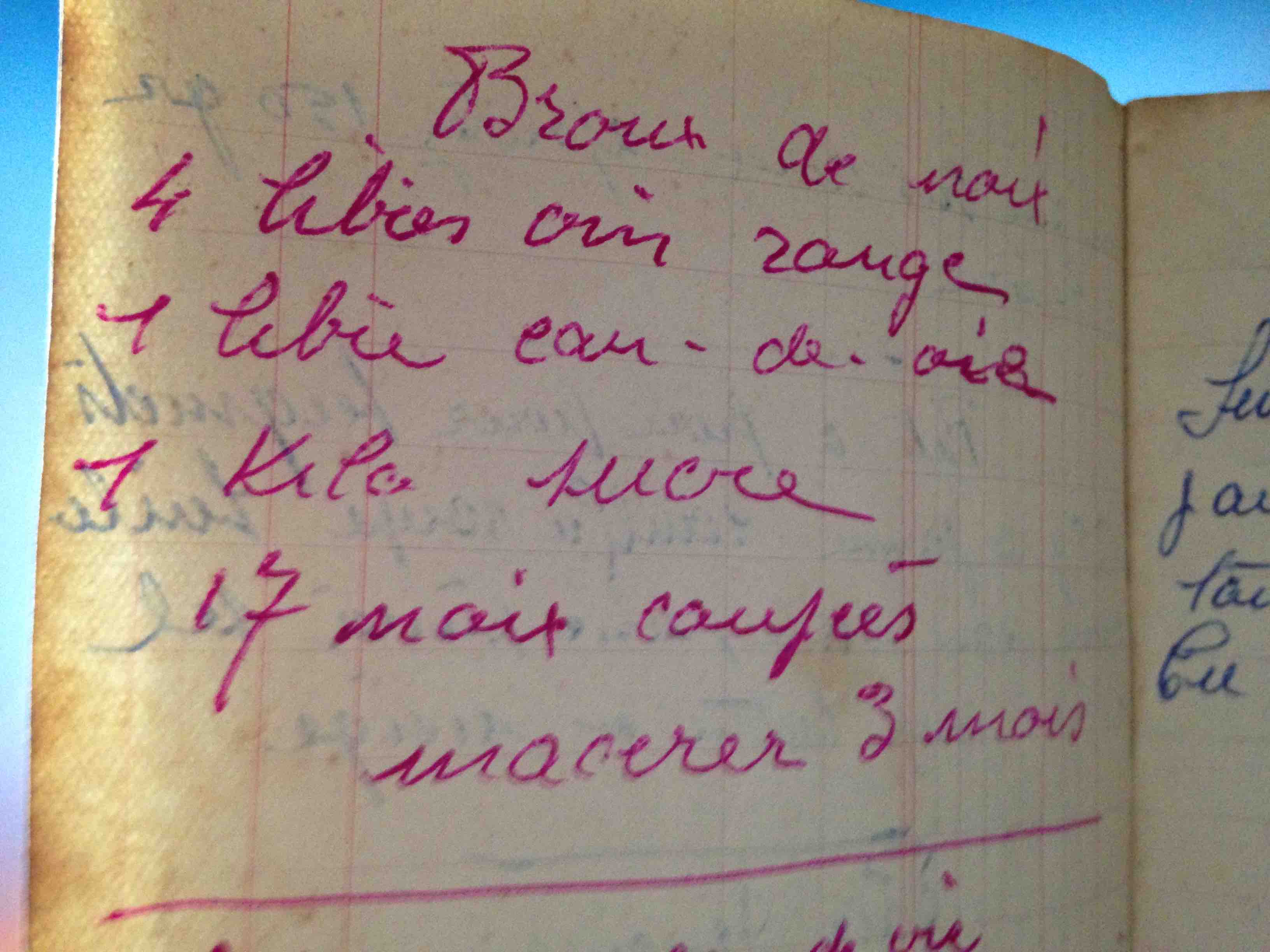 Christiane faisait macérer les noix coupées en quartiers dans du vin d’Algérie et de la goutte de Champagne.