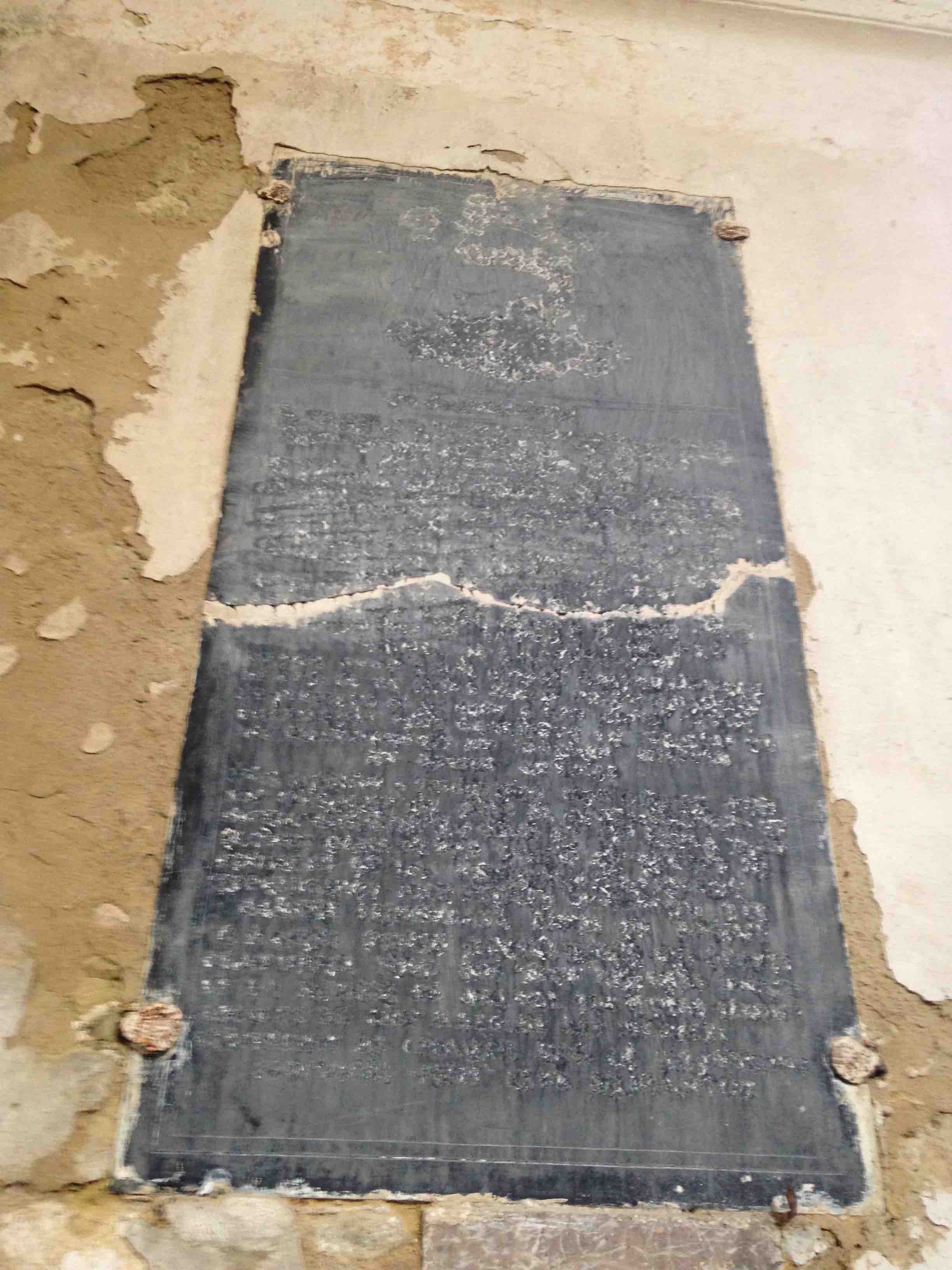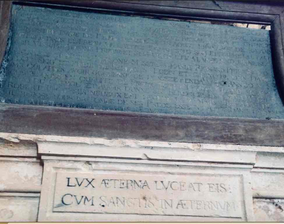 1794 Sous la Terreur, la destruction des insignes de la féodalité va bon train. Ceux qui figuraient sur la dalle de pierre noire, fixée de nos jours à gauche dans le chœur de l’église, ont dû probablement être mutilés à cette époque14 .