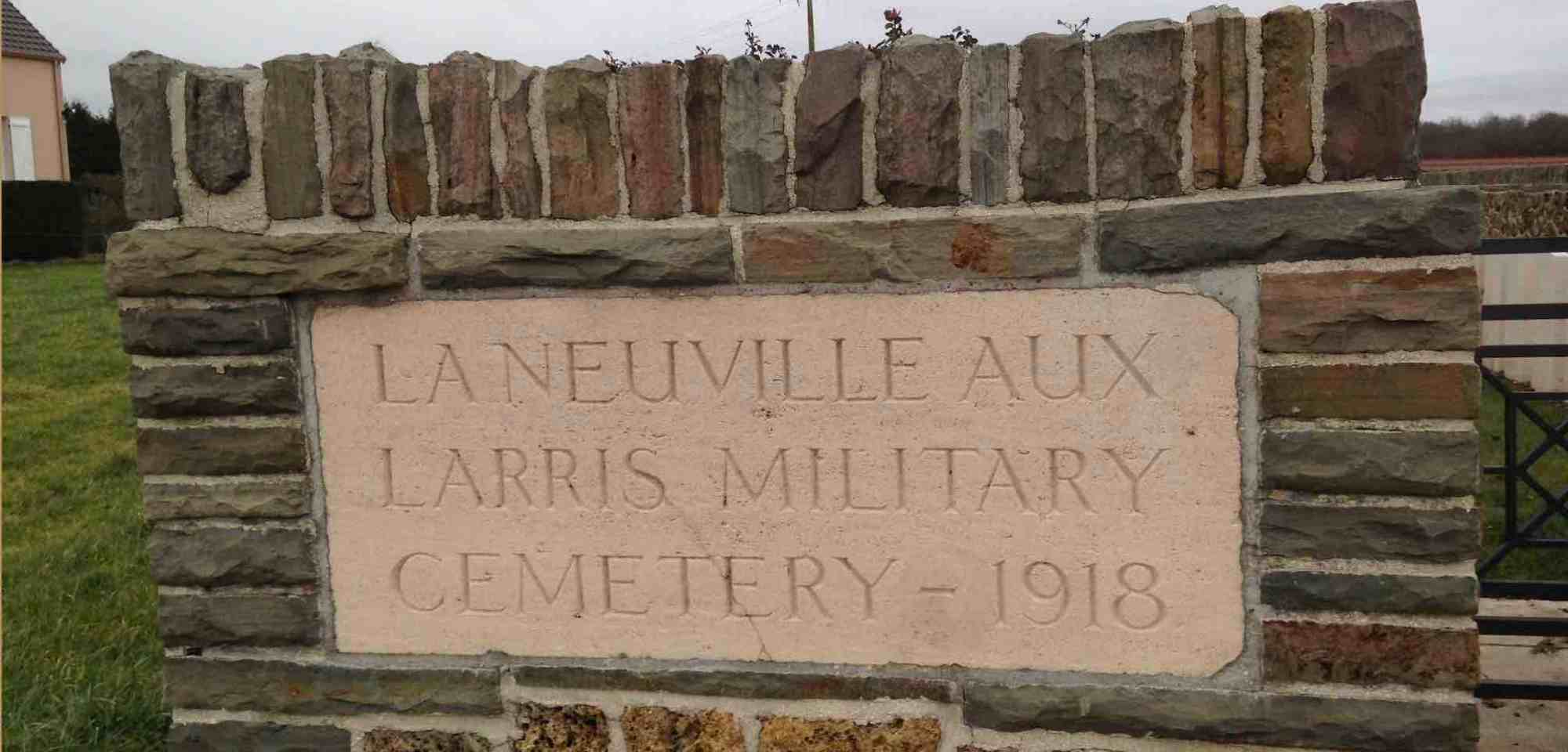 Le cimetière militaire de La Neuville-aux-Larris, qui jouxte le cimetière civil, a surgi de terre grâce aux troupes africaines françaises présentes dans le secteur au mois de juin 1918. Il a accueilli les corps de 98 soldats britanniques, 137 soldats français et 42 soldats allemands. Le 3 août 1919, les Neuvillats ont célébré la fête de la reconnaissance nationale et le dimanche 2 novembre suivant, une foule nombreuse assiste à la messe des morts puis se rend au cimetière militaire pour y déposer une couronne sur laquelle est inscrite : « La jeunesse de La Neuville-aux-Larris à ses vaillants défenseurs ». Régulièrement entretenu par les jeunes filles neuvillates, ce cimetière a alors revêtu sa plus belle parure.