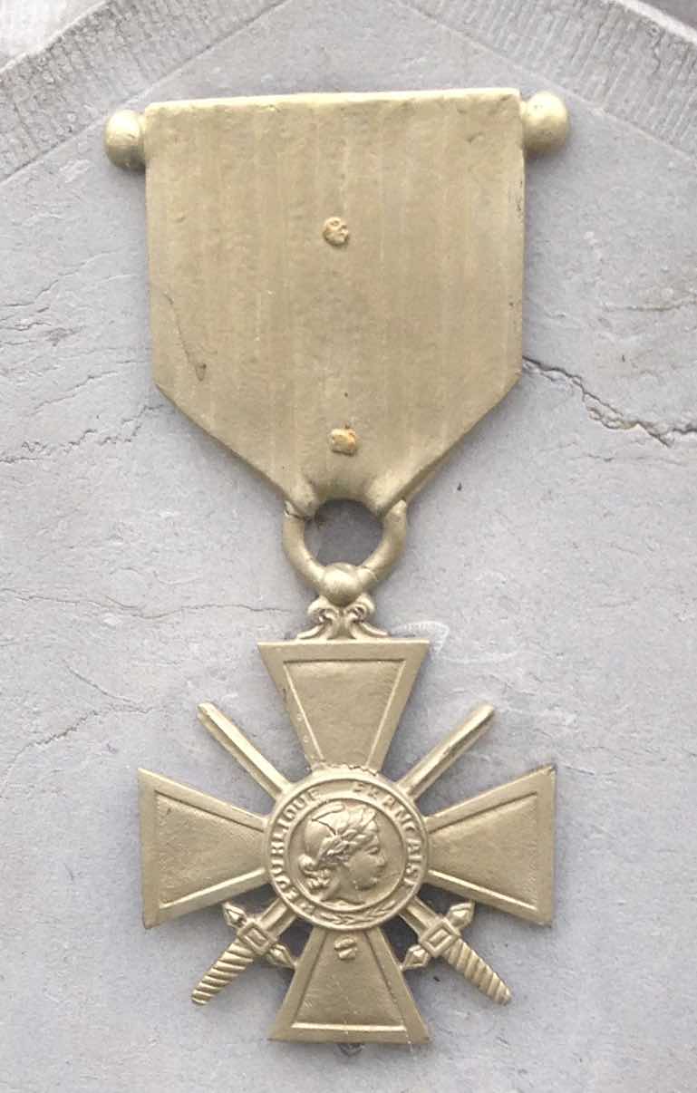 < Croix de Guerre sur le monument aux morts de Cuchery © C Chevry