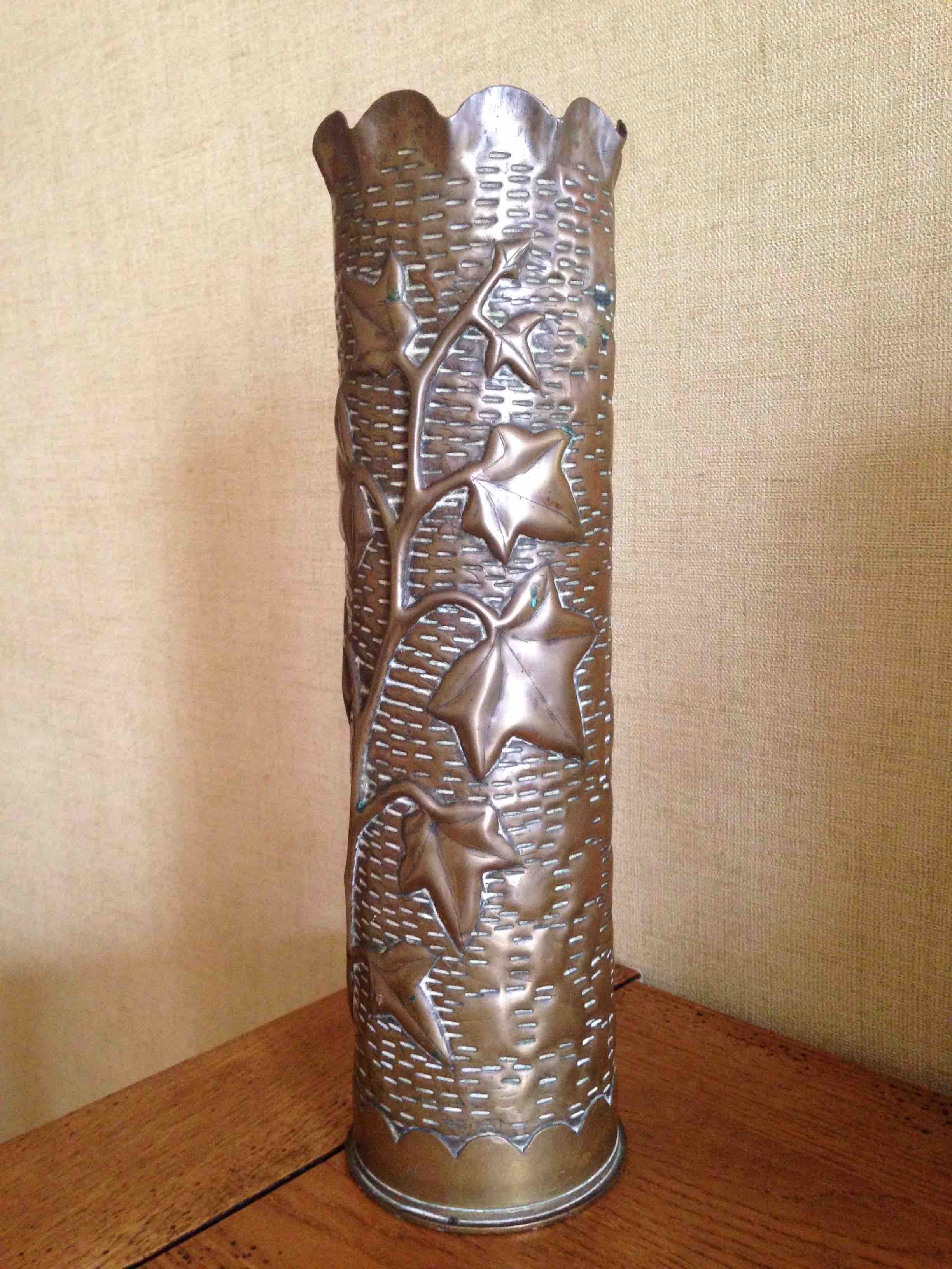 Douille d’obus de 75 mm, vase rapporté par un soldat cucheriat, (selon ses descendants). Ce genre d’objets pouvait figurer parmi les cadeaux de mariage.