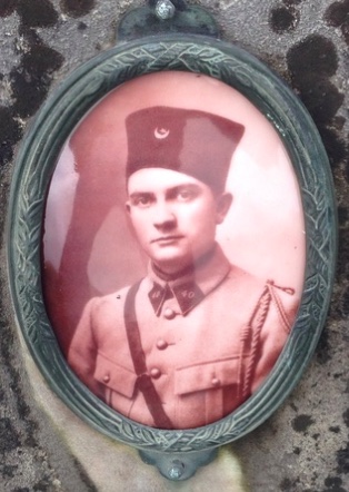 Julien Chevry, marsouin, est mort le 11 juin 1915 à La Harazée, près de Vienne-le-Château. Il figure à gauche sur ce cliché qui a été envoyé le 18 novembre 1914 de Cherbourg, devant le café Aux bons vivants (Quelle ironie du sort ! Ces quatre compagnons d’armes sont tous morts pour la France quelque temps après !). Julien a été incorporé dans la 1re Coloniale, 26 e Compagnie, vaguemestre. Ses parents, Cyrille Chevry et Georgina Nolin, n’ont pas demandé la restitution de son corps, estimant qu’il devait rester enterré parmi ses camarades et que l’Etat entretiendrait bien sa tombe. De mémoire de famille, il semblerait qu’ ils ne soient pas allés se recueillir au cimetière de La Harazée, malgré le voyage annuel gratuit offert par l’Etat (il est vrai que les frais d’hôtel n’étaient pas inclus). C’est leur petit fils, bien des années après leur décès, qui ira faire découvrir à ses enfants la sépulture de Julien.