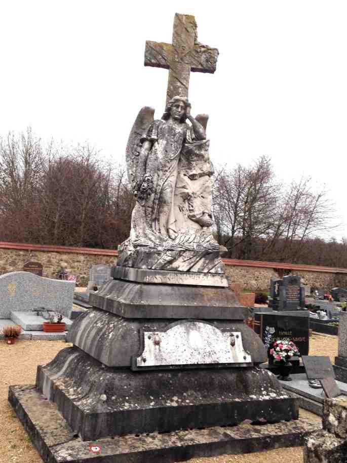 < Tombe monumentale dédiée à Marcel Nicolas Bonnenfant, tué le 1! janvier 1917 à Auberive à l’âge de 21 ans.©C Chevry