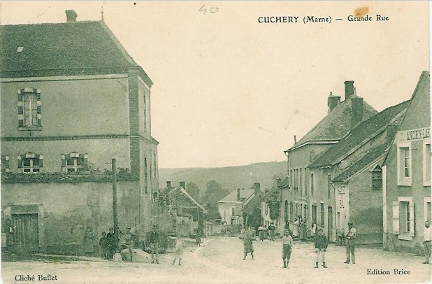 XVIIIe siècle La Grande Rue se raccorde aux chemins reliant l’église de Cuchery à celle des villages voisins, se connectant, à l’est, à la rue de la Gayette. La présence de boutiques d’artisans et de commerçants lui confère une certaine animation. En terre battue, et sans trottoirs comme les autres rues du village, elle offre, en 1776 une largeur maximale de six mètres, bordée de bâtisses non alignées et d’entrées de cours communes.