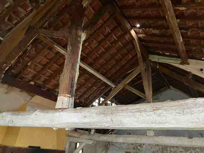 1 : Charpente, 2 : arrivée d’eau, 3 et 4 : niches, au vieux lavoir de La Neuville-aux-Larris (2020) © C Chevry