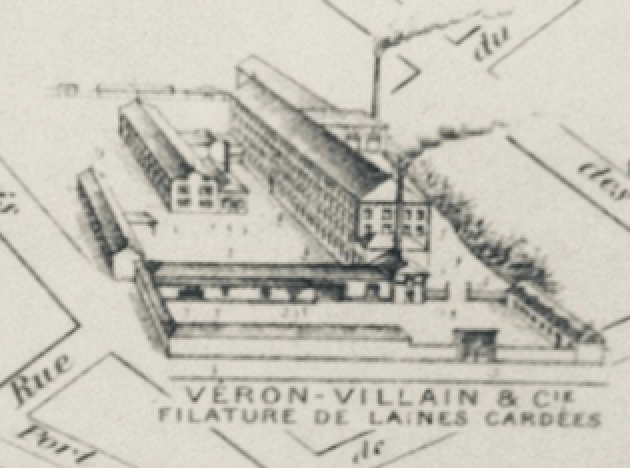 A la place du couvent rémois, vendu en 1793 comme bien national, va apparaître une usine textile de filature de laines cardées, devenue propriété de l’entreprise Véron à la fin du XIXe siècle, filant et tissant le coton après 19205.